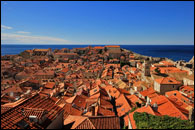 Pohled na Dubrovník z hradeb, v pozadí pevnost Lovrijenac
